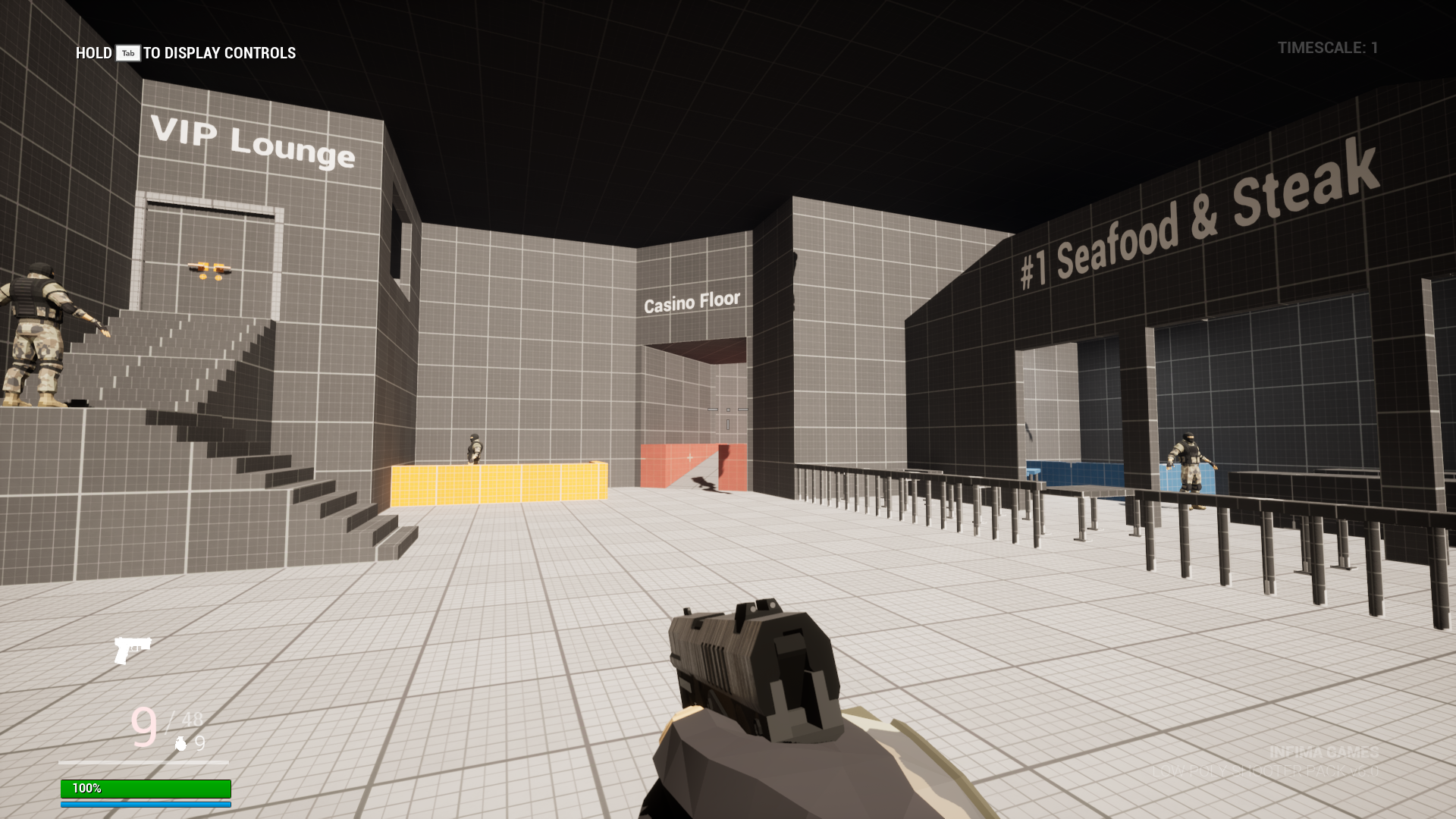 Revelation is an FPS level that focuses on storytelling through environmental design, guiding the player with architecture, and encouraging player choice through non-linear level design. This level is set in Las Vegas airport and was made during a LD bootcamp. During this bootcamp I did weekly playtesting to assit with rapid iteation.