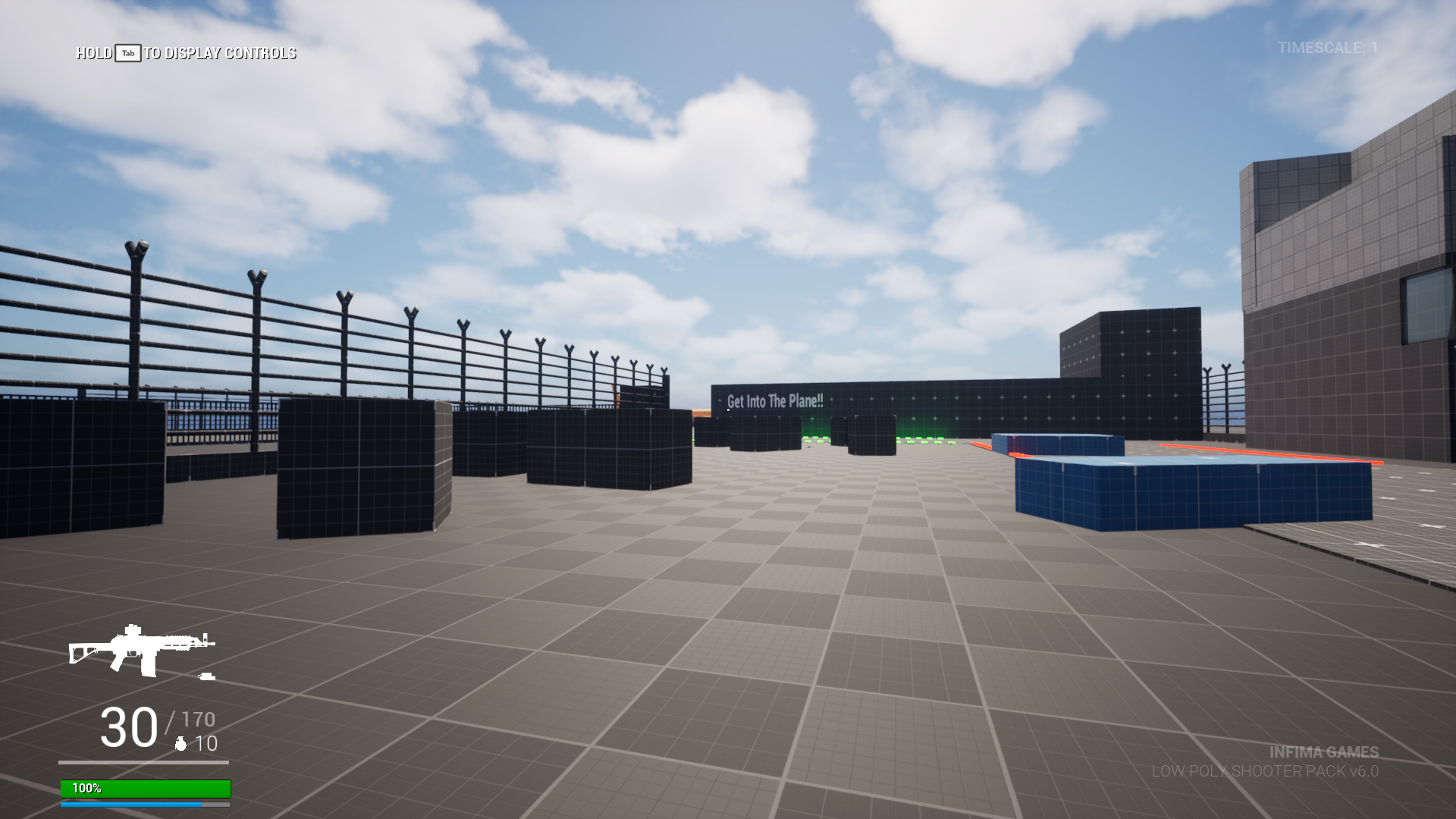 The final stage the plater must fight through the tarmac where enemies can be hiding behind any of the boxes. This moment is meant to raise tention to the max due to being in the open and not knowing where anyone can be. The green lights on the tarmac are meant to clearly show the player where they should head to so they dont feel lost or overwhelemed.