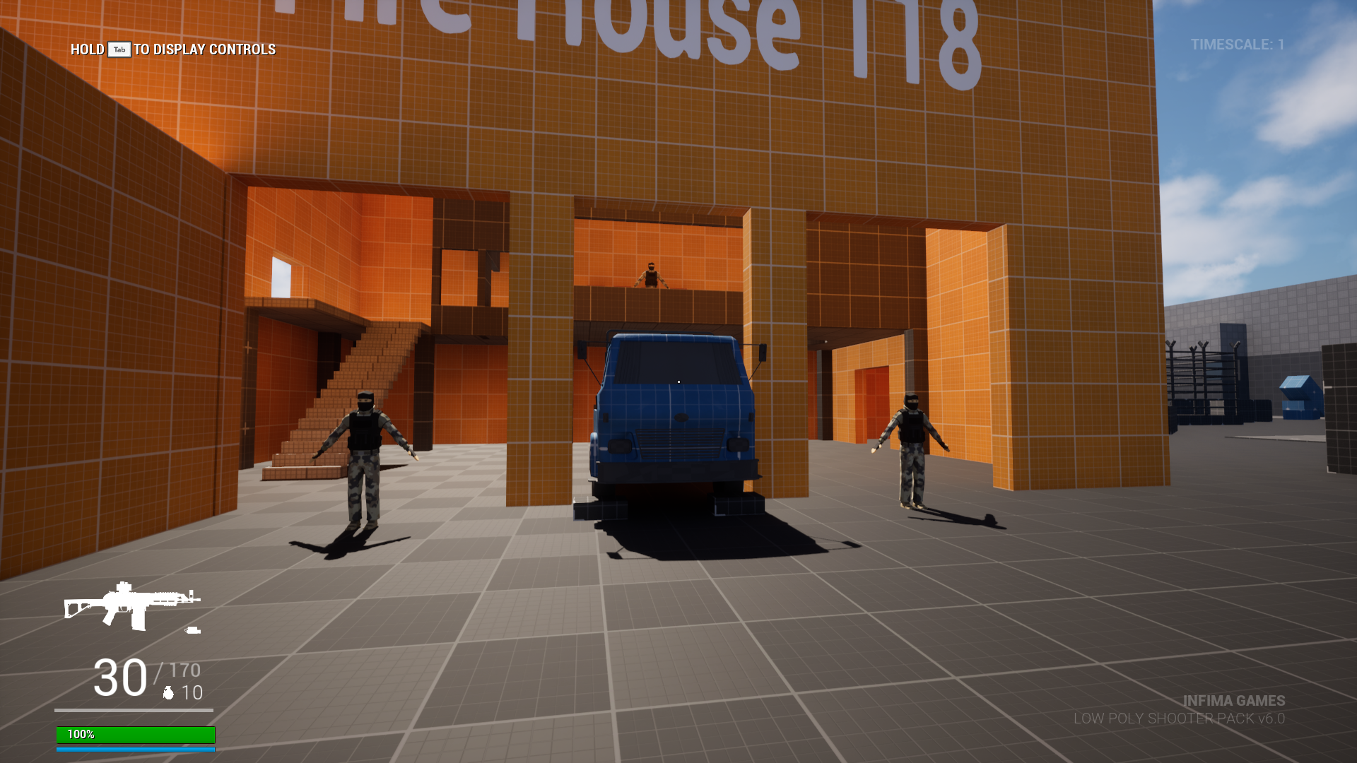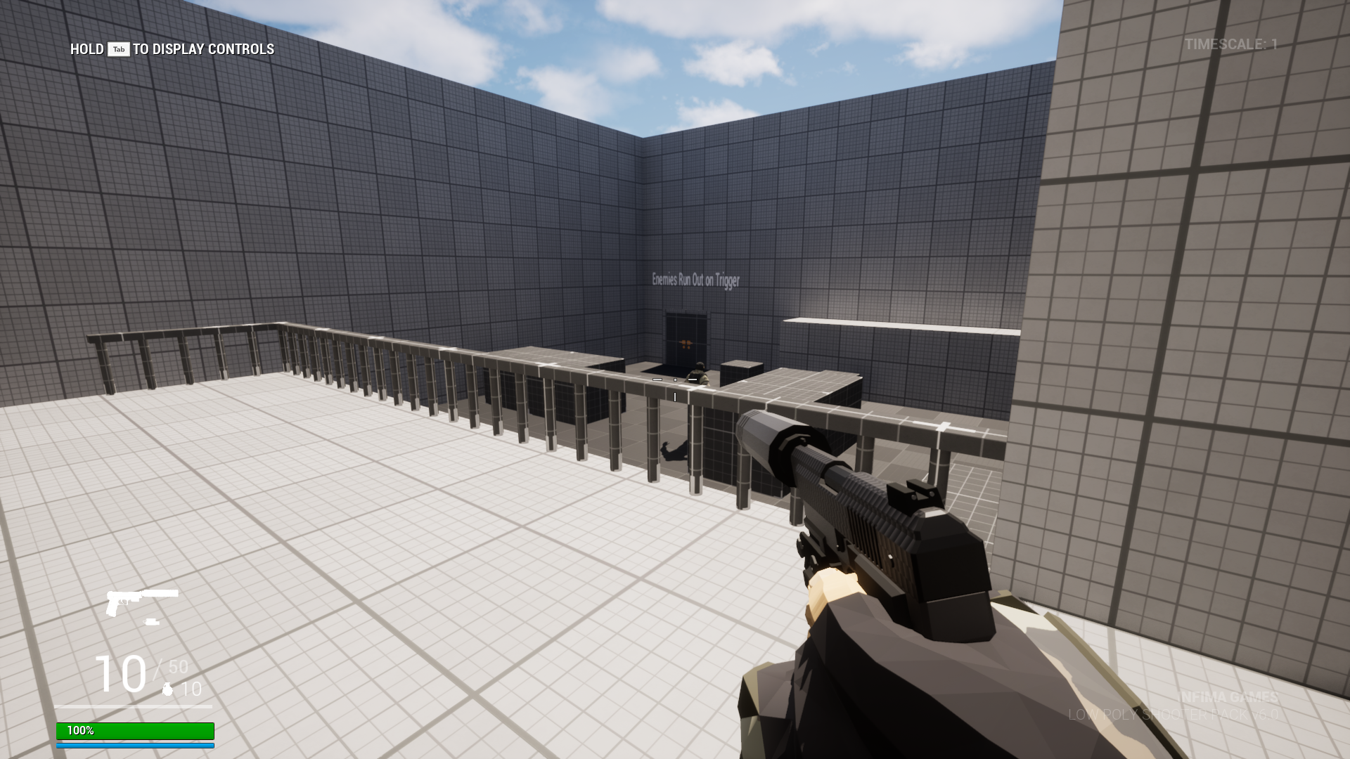 The level begins with the player landing on the roof of an airport and fighting their way down. This opening section is designed to gradually build tension as the player progresses through “Act 1.” I also carefully placed enemies to create clear sightlines to key landmarks, subtly guiding the player forward through visual cues.